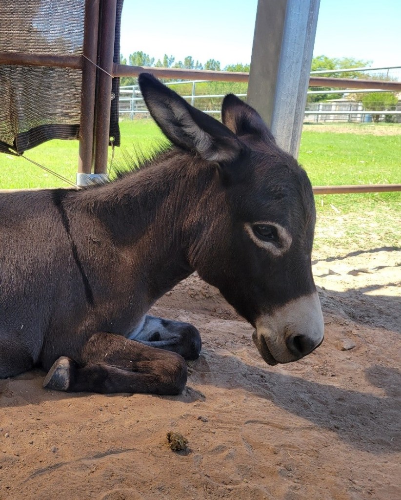 Polly is an 8 year old BLM (Bureau of Land Management) burro. We adopted her in 2021 from a BLM holding facility in Florence, AZ. This once shy donkey is now incredibly sweet, gentle and inquisitive. Polly has a very calming presence. She is fantastic with children and loves getting brushed and scratched in all those hard-to-reach places. She enjoys companionship, being brushed, and hiking, albeit at a leisurely pace.